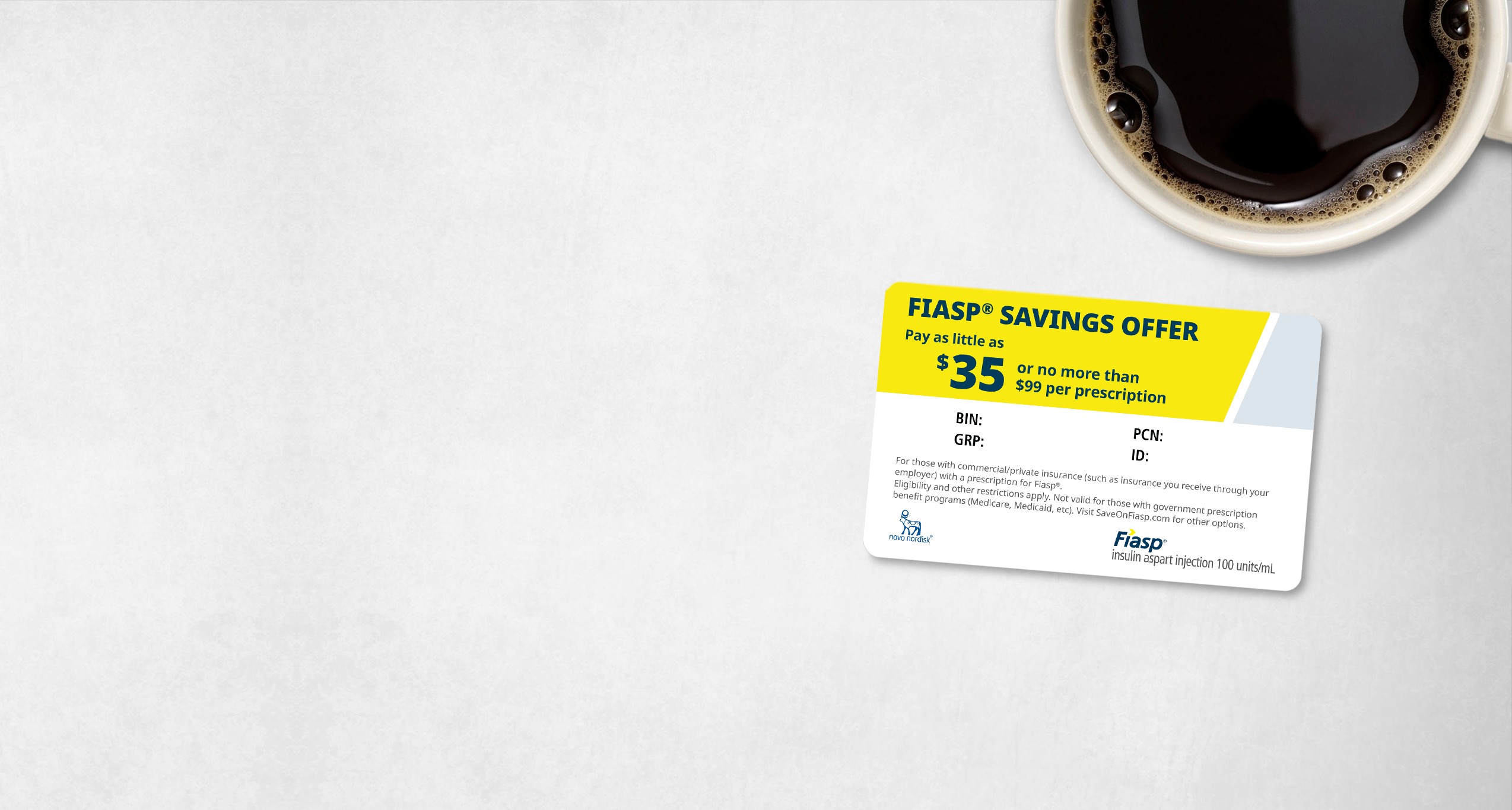 bIf you are commercially insured and Fiasp® is not covered, or Fiasp® is covered and your copay is above $100 per 30-day supply, this offer will work outside of your insurance, will not count toward any deductibles, and cannot be applied to your true out-of-pocket costs.