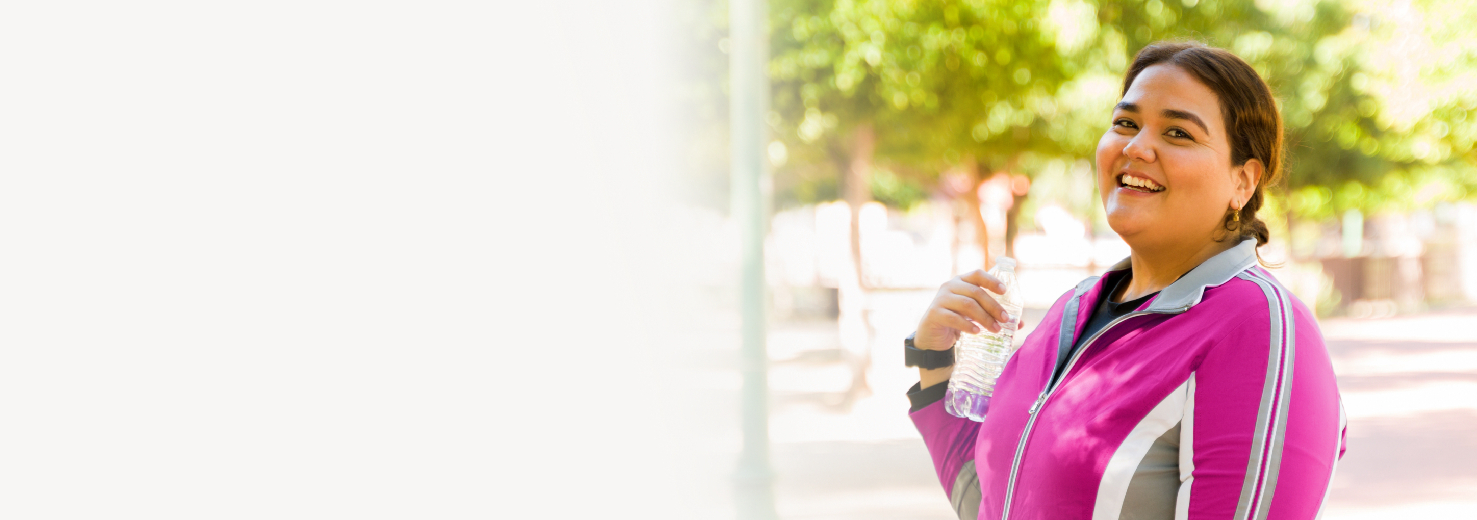 Woman with water bottle and pink jacket